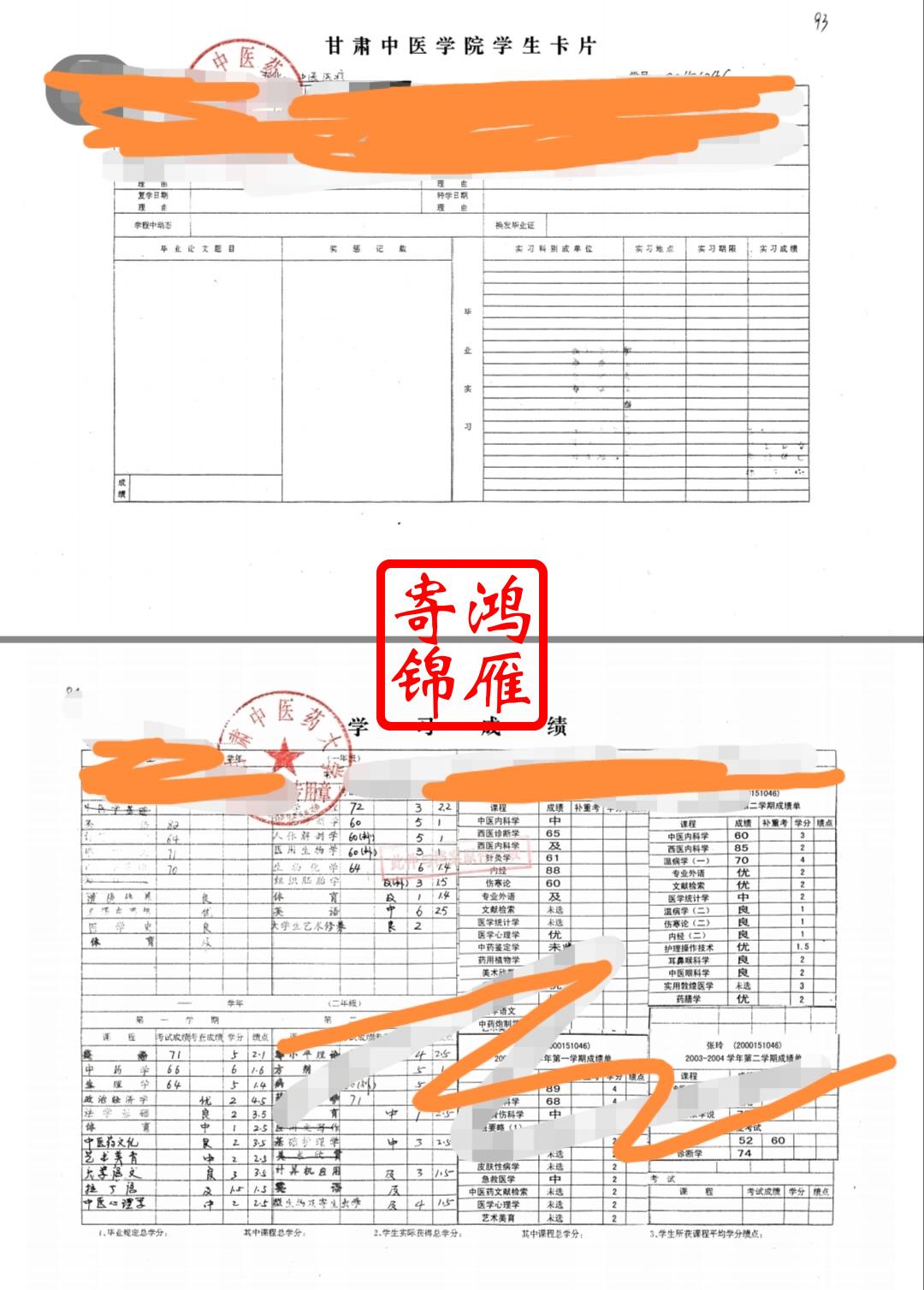 甘肃中医药大学出国留学中英文成绩单打印案例