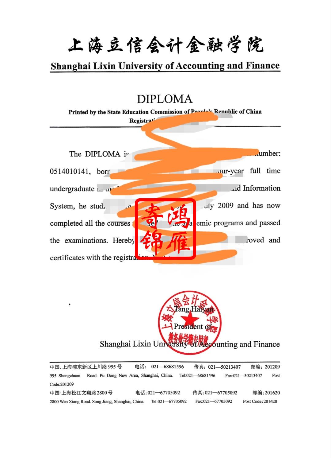 上海立信会计金融学院出国留学英文毕业证明英文学位证明打印盖章案例