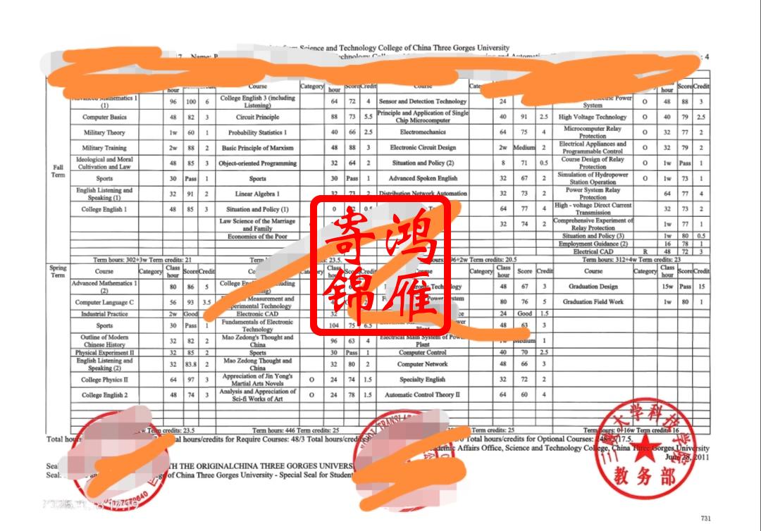 三峡大学科技学院出国留学中英文成绩单打印案例