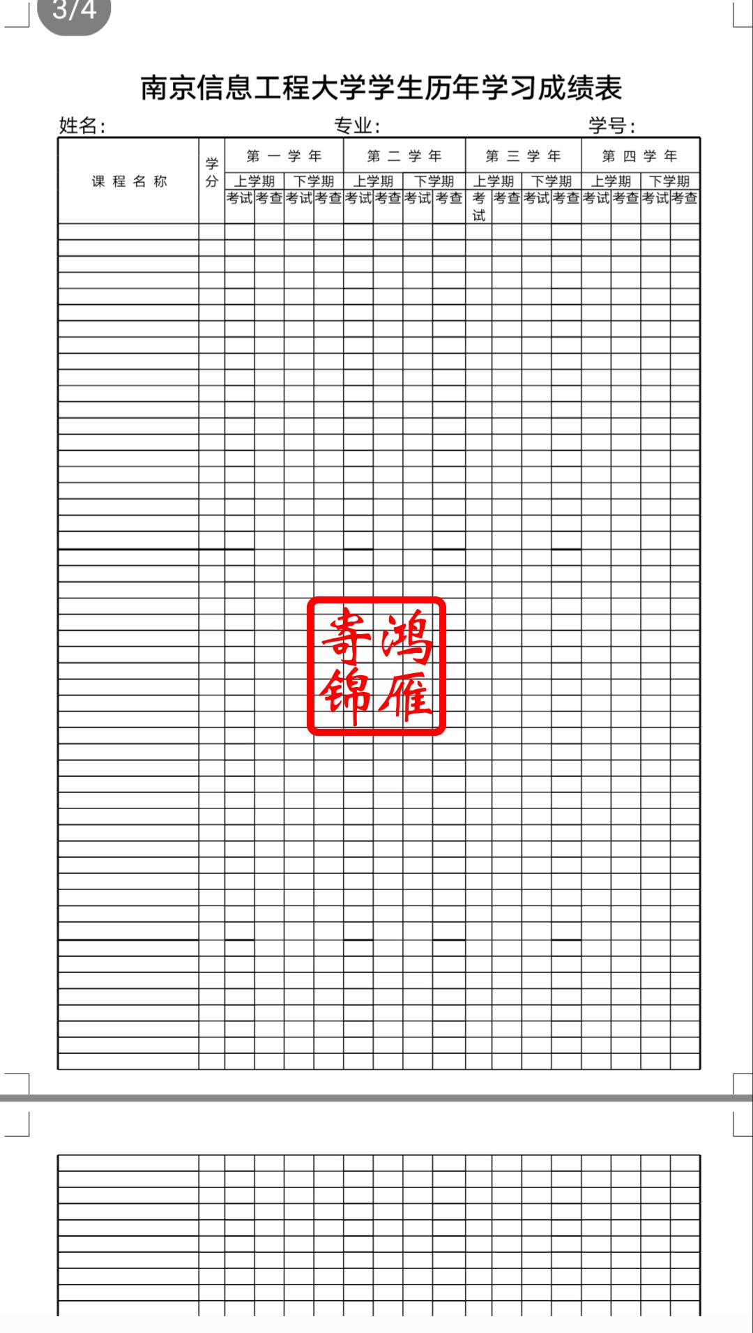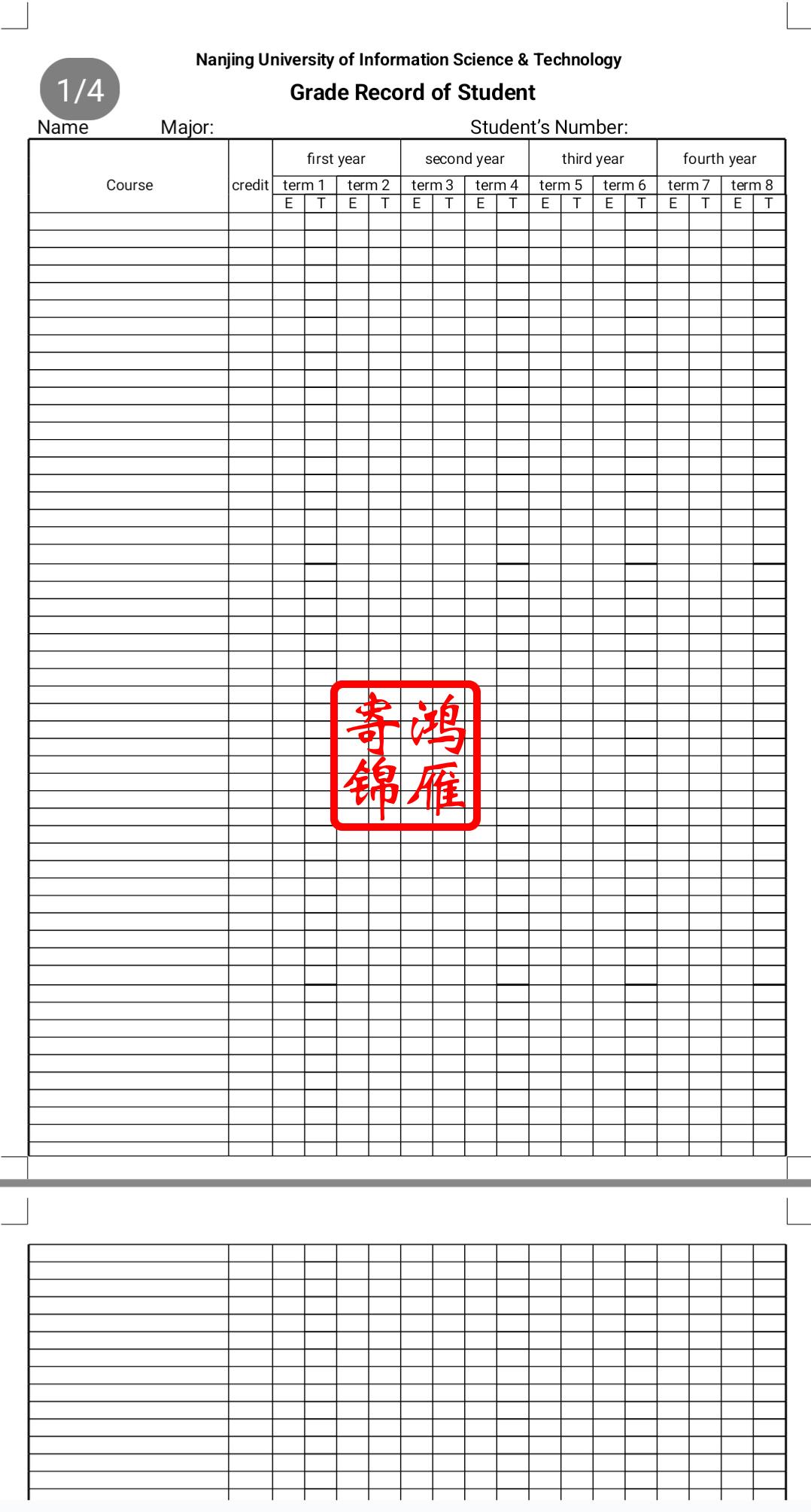 南京信息工程大学出国留学中英文成绩单翻译模板