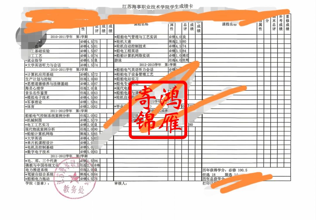 江苏海事职业技术学院出国留学成绩单打印盖章案例
